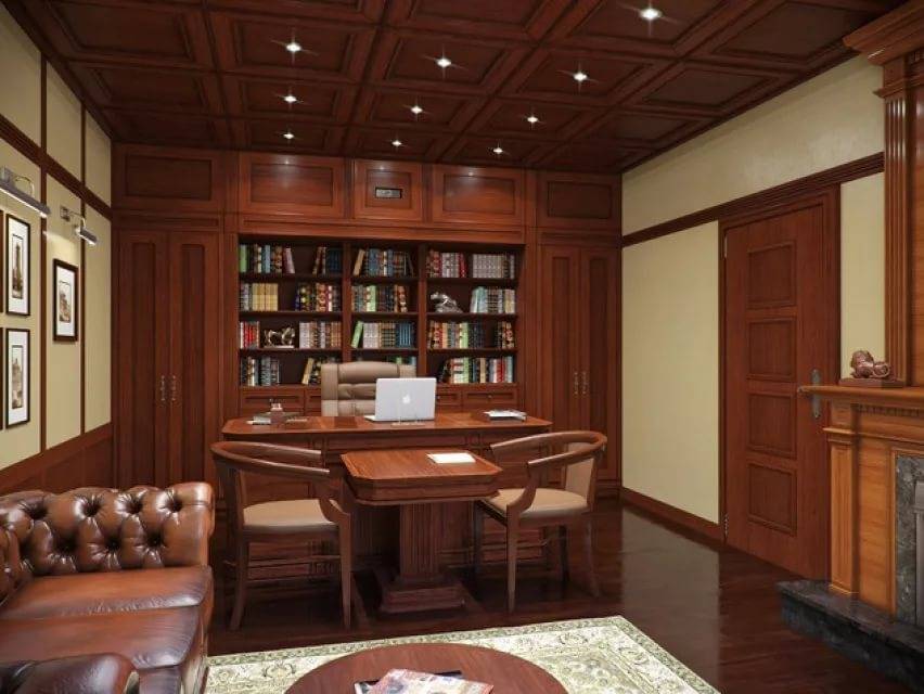 Дизайн кабинета в классическом интерьере отличает практичность и функционализм