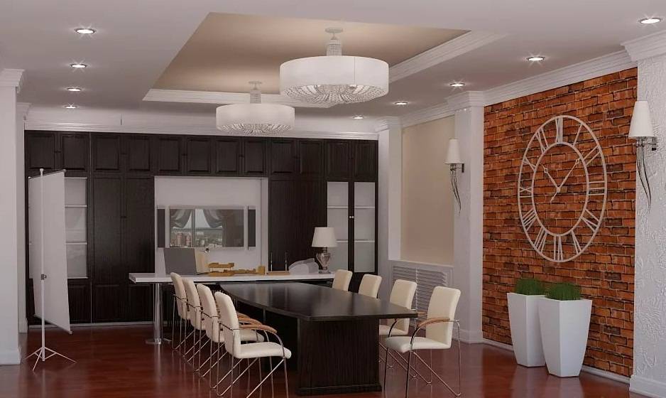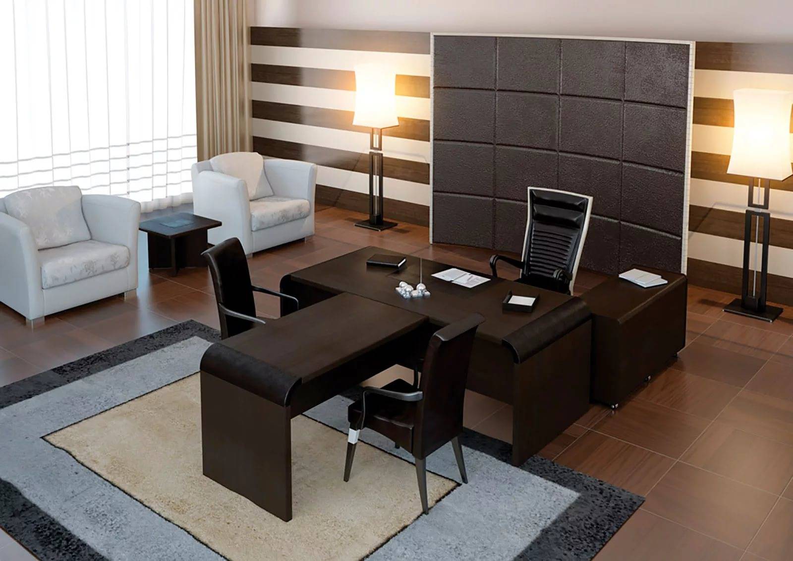 Кабинеты руководителей высшего звена лучше оформлять в классическом стиле, предполагающих строгую и, в то же время, роскошную обстановку. Вся мебель должна выполняться из натуральных и экологически чистых материалов.