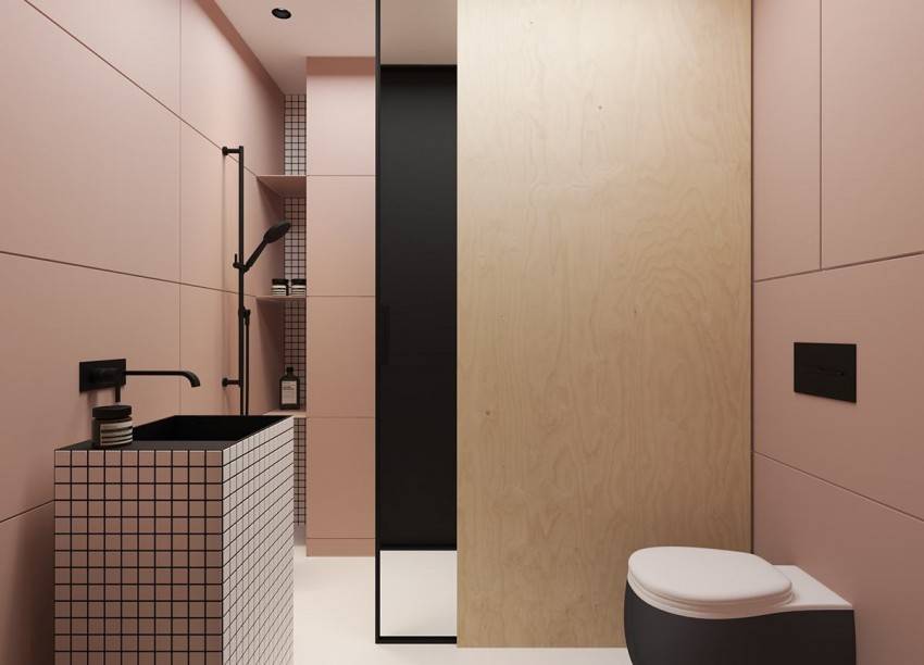 Необходимо учесть каждый сантиметр, потому что в итоговой композиции это все сыграет важную роль. Избегайте острых углов, отдайте предпочтение округленной сантехнике.