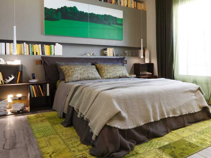 - Установку кровати поперек длинной стены, чтобы получать доступ к обозрению окон с одной стороны, дверей – с другой;