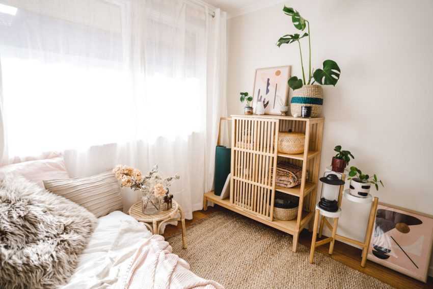 - Минимальное количество мебели, как показано на фото. Она должна быть самой необходимой и не загромождать комнату.