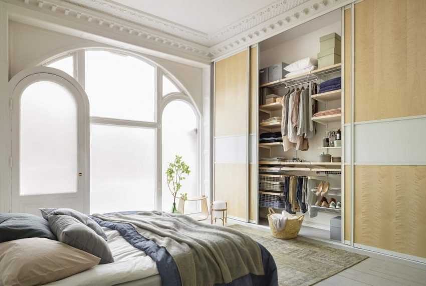Когда всё находится на виду, поддерживать порядок становится значительно легче. Однако открытое хранение подходит и для желающих спрятать свои вещи от любопытных глаз. Достаточно отделить зону хранения легкой шторой или дверьми-купе.