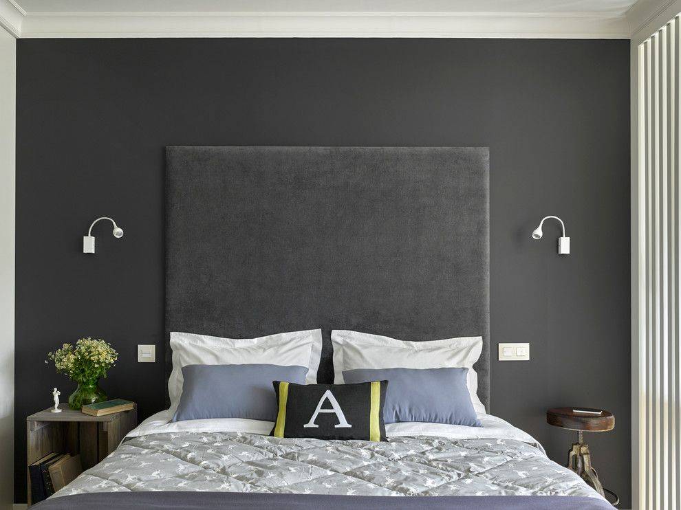 - Изголовье кровати по традиции направляют к стене, чтобы жильцы могли свободно подойти к ней, каждый со своей стороны. Прикроватных тумбочек в этом случае тоже две, как и светильников. Таким образом, никто никому не мешает, не перелезает на свою сторону через другого, не беспокоит при необходимости выйти или почитать.