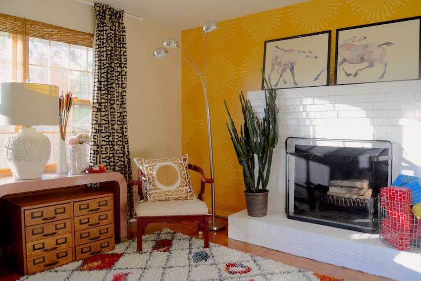 В качестве декора можно использовать подушки, украшенные ярким принтом, на стенах — повесить фотографии.