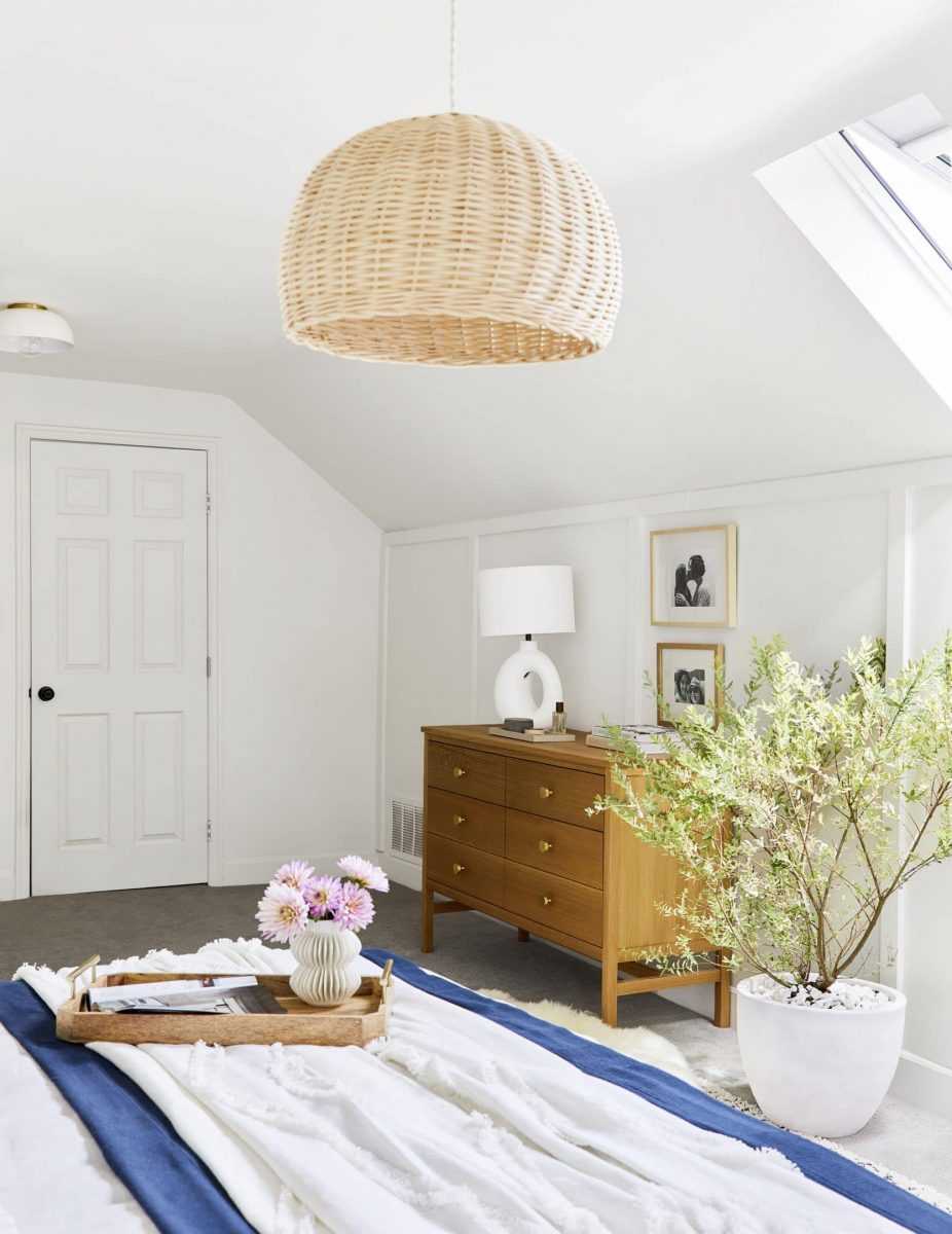 Если кровать – композиционный центр комнаты, то все остальные предметы, играя вспомогательную роль, не должны привлекать к себе особого внимания. Их назначение – подчеркнуть доминанту интерьера.