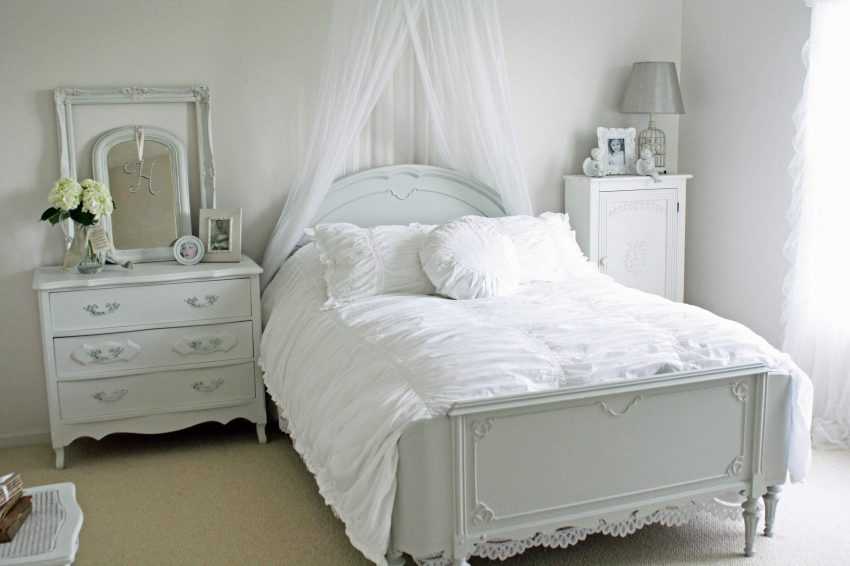 Массивная и темная мебель не подойдет для небольшой комнаты. Лучшим вариантом станет светлая или белая кровать с простыми формами.