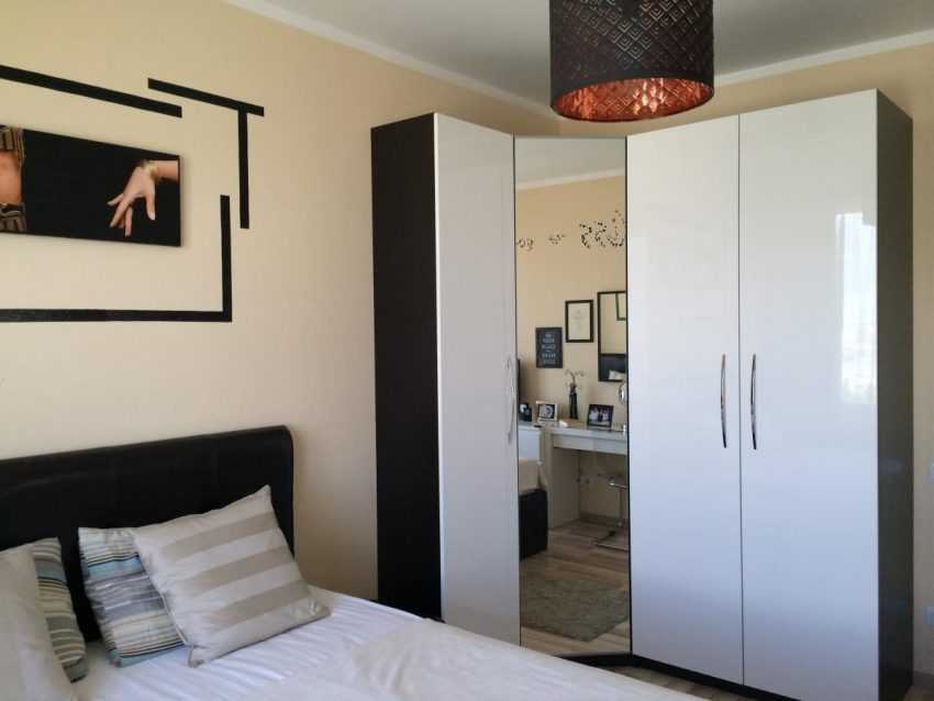 Прямоугольная форма комнаты не самый лучший вариант для обустройства спальни, поскольку в ней сложно разместить с максимальным комфортом большую кровать и шкаф для одежды.