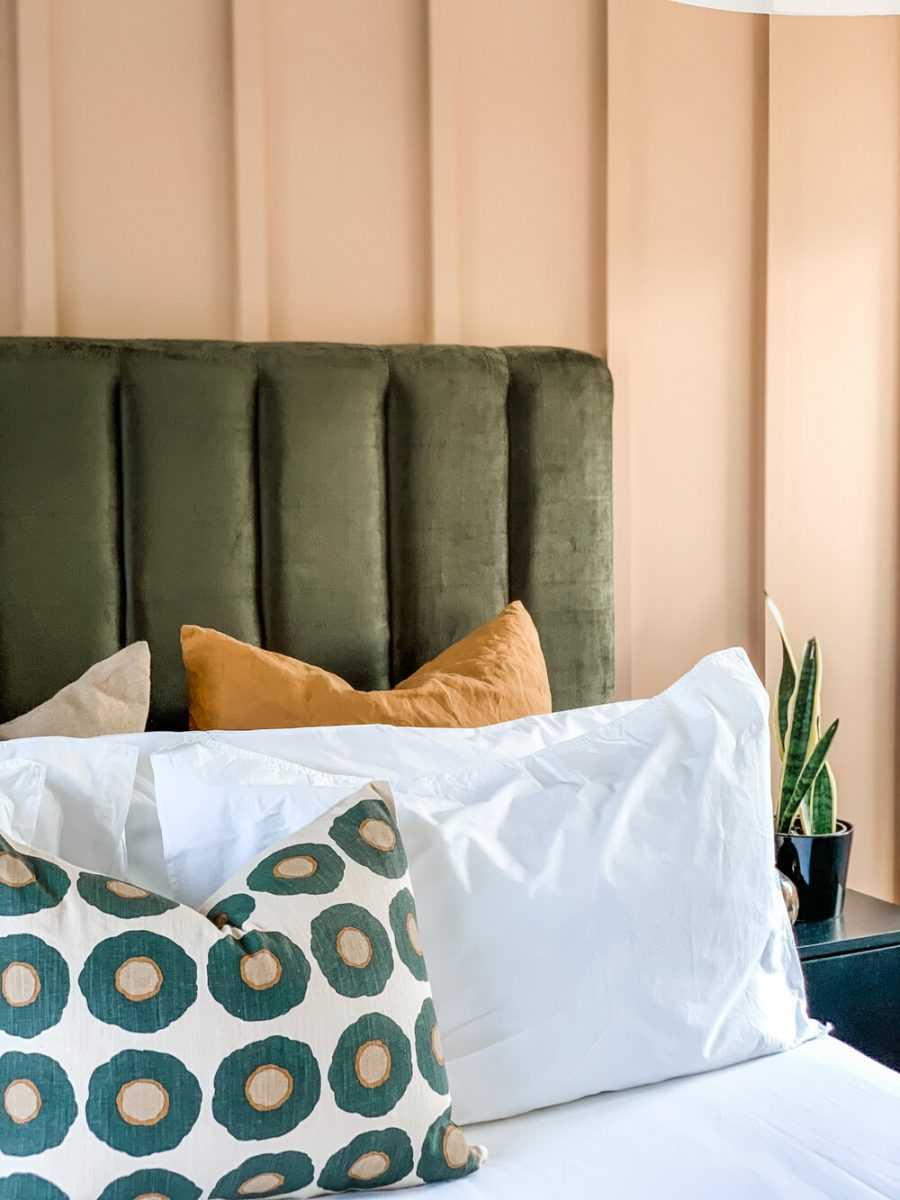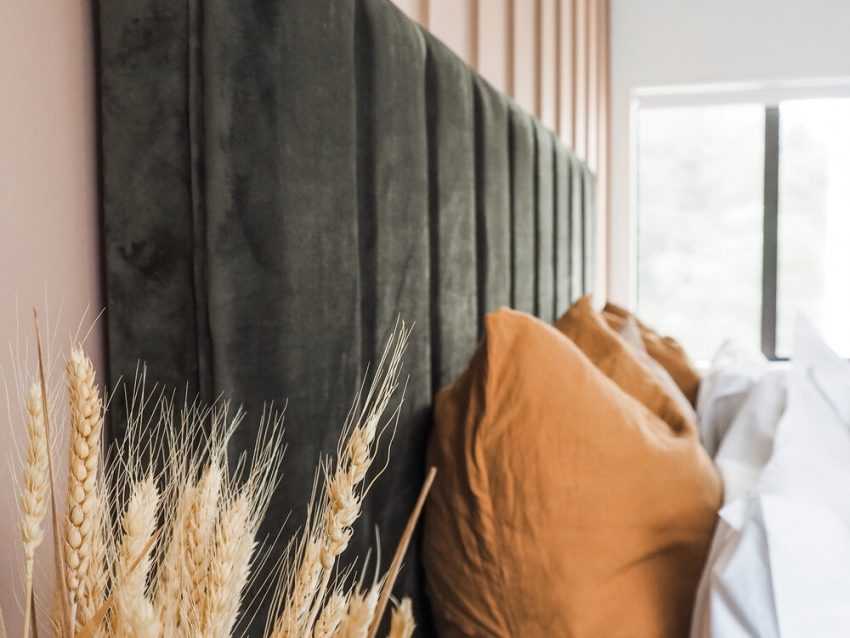 Изысканное сочетание розового и травяного в спальне