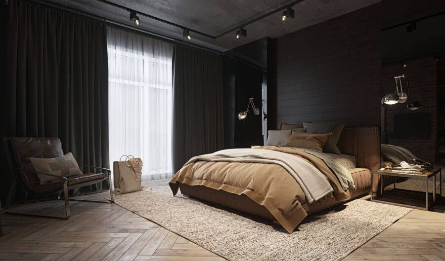 Спальня в коричневых тонах