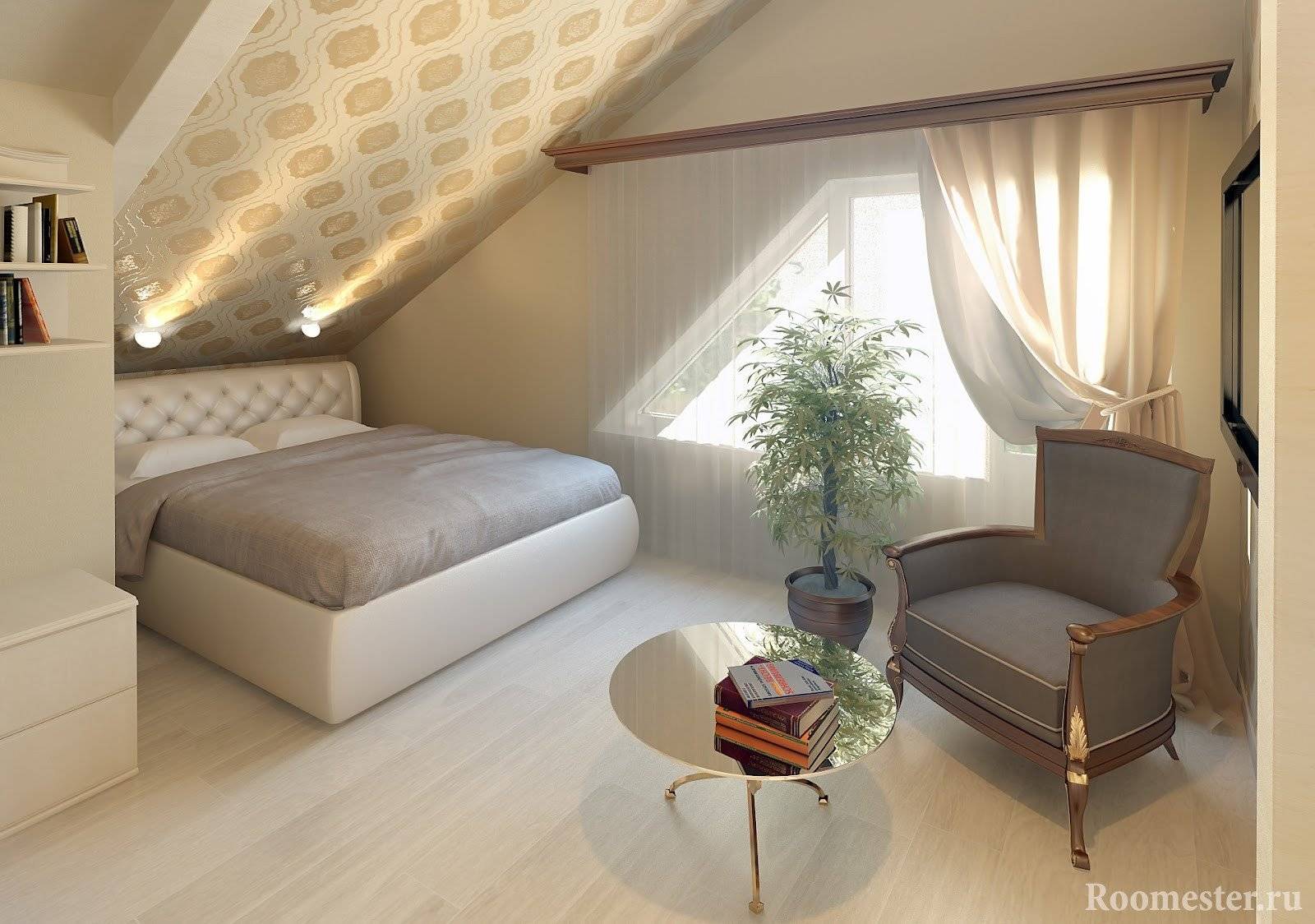 Обустройство интерьера «хозяйской» спальни в мансарде по фото целесообразно только при наличии достаточного пространства. Такой прием поможет получить тихую и уютную комнату для сна и более рационально использовать нижние комнаты.