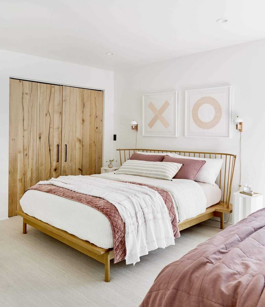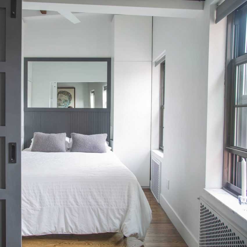 - Не нужно загромождать спальню массивной мебелью и многочисленным декором. Стоит задуматься о встроенной мебели, которая поможет сэкономить пространство.