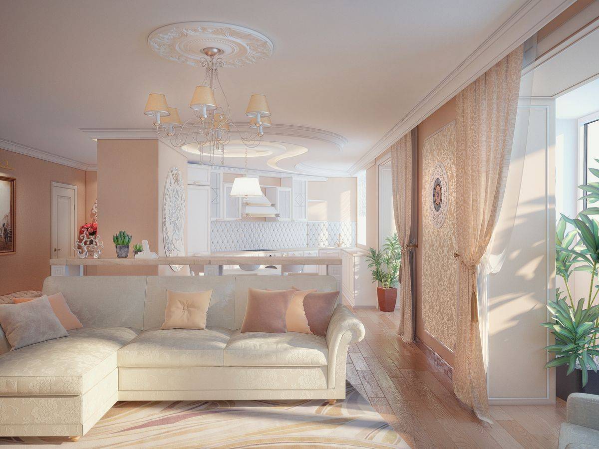 Возможны два варианта объединения. В первом случае полностью стараются границы между помещениями. При воплощении задумки стоит использовать один вид отделки. Необходимо положить цельное напольное покрытие без стыков и порога.