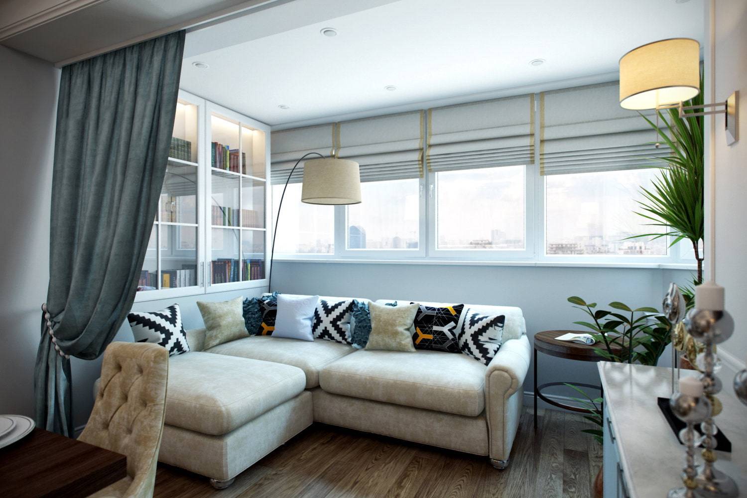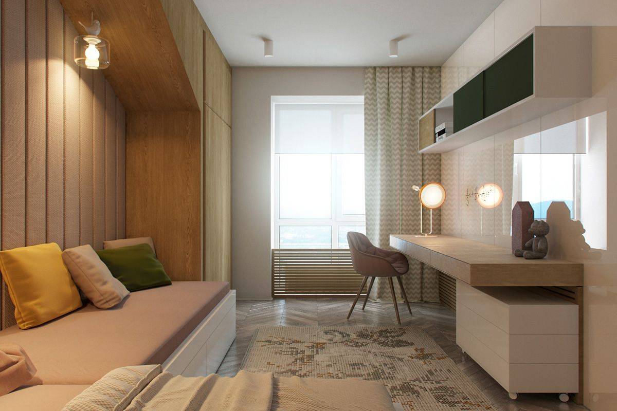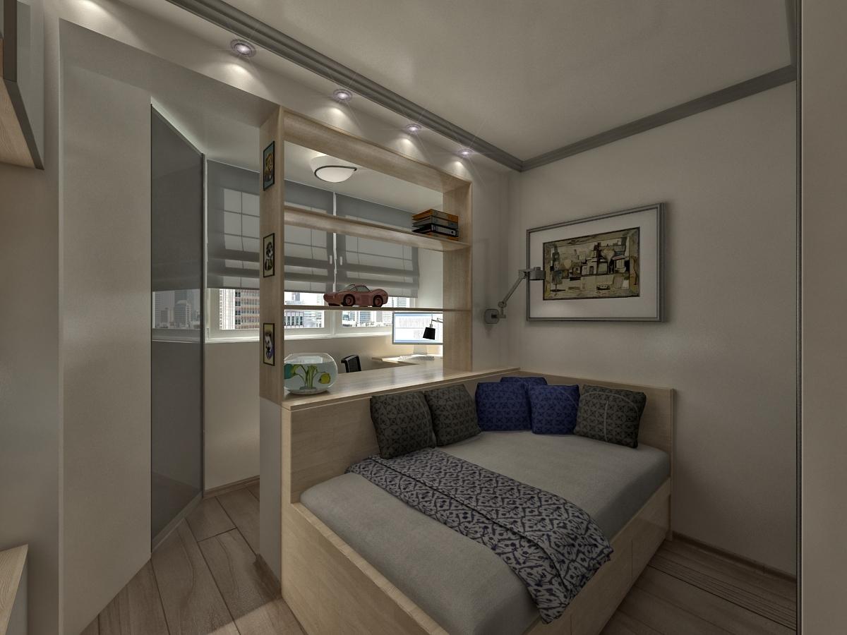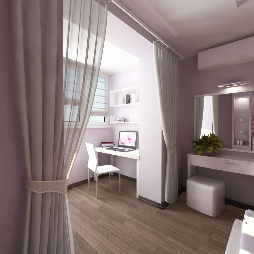 - присоединяемая лоджия и территория спальни разграничены практически, визуально и функционально.