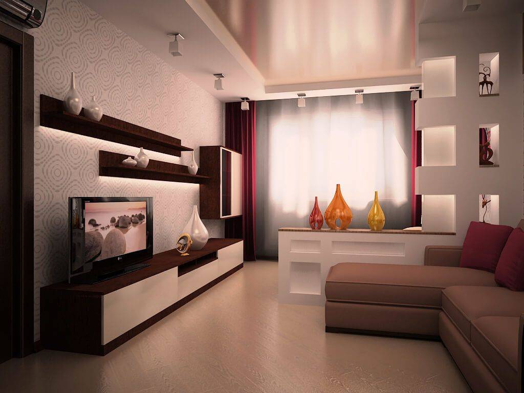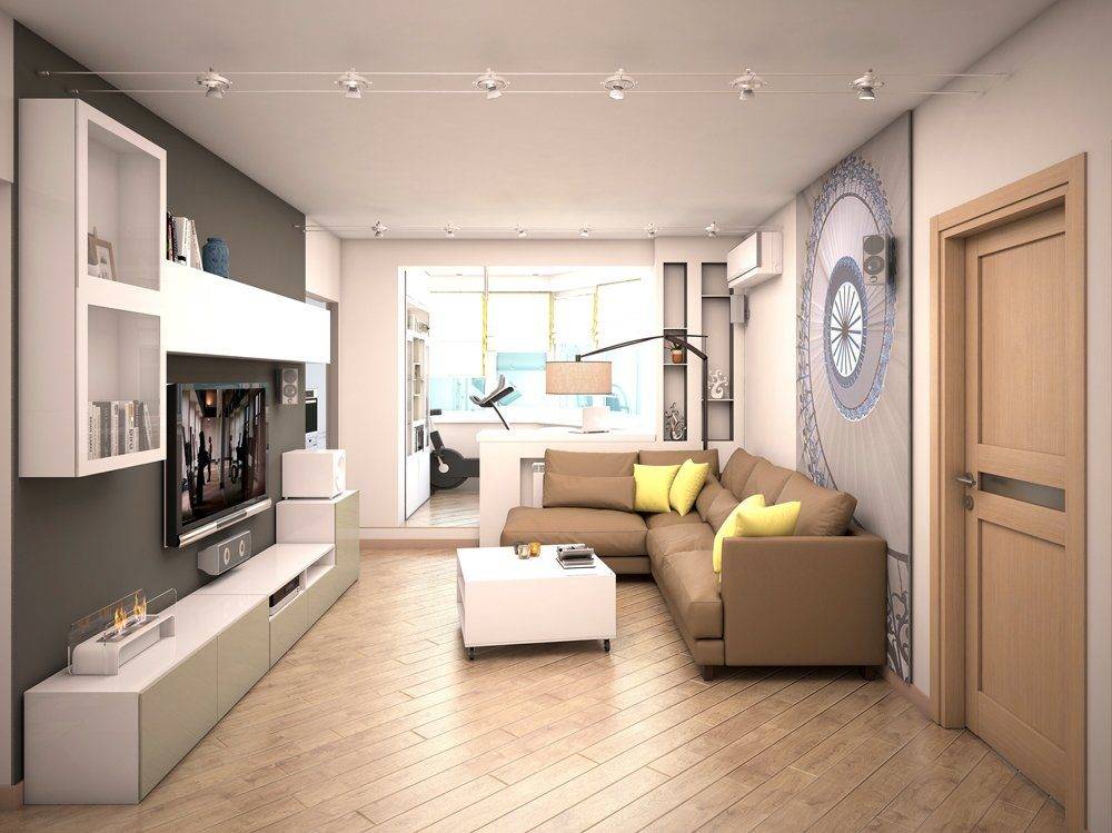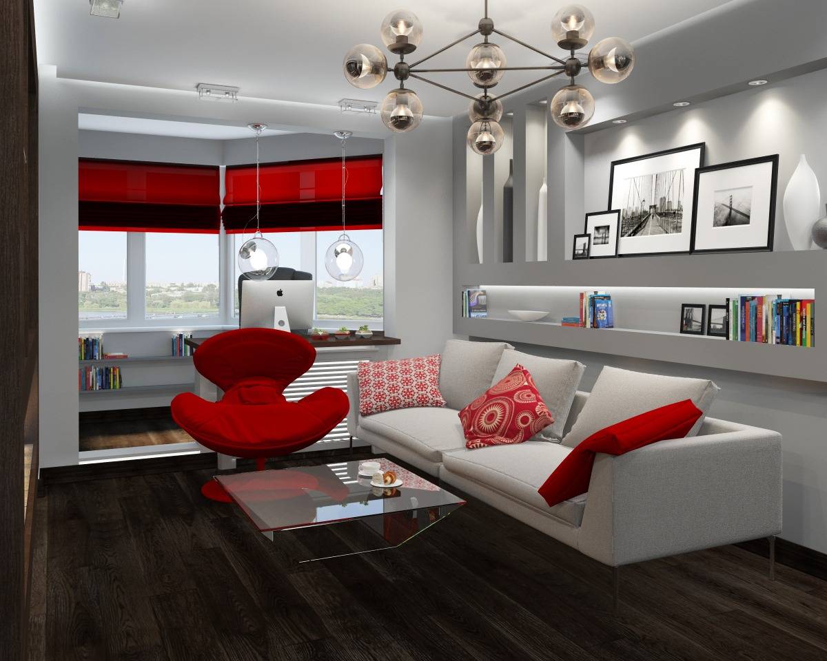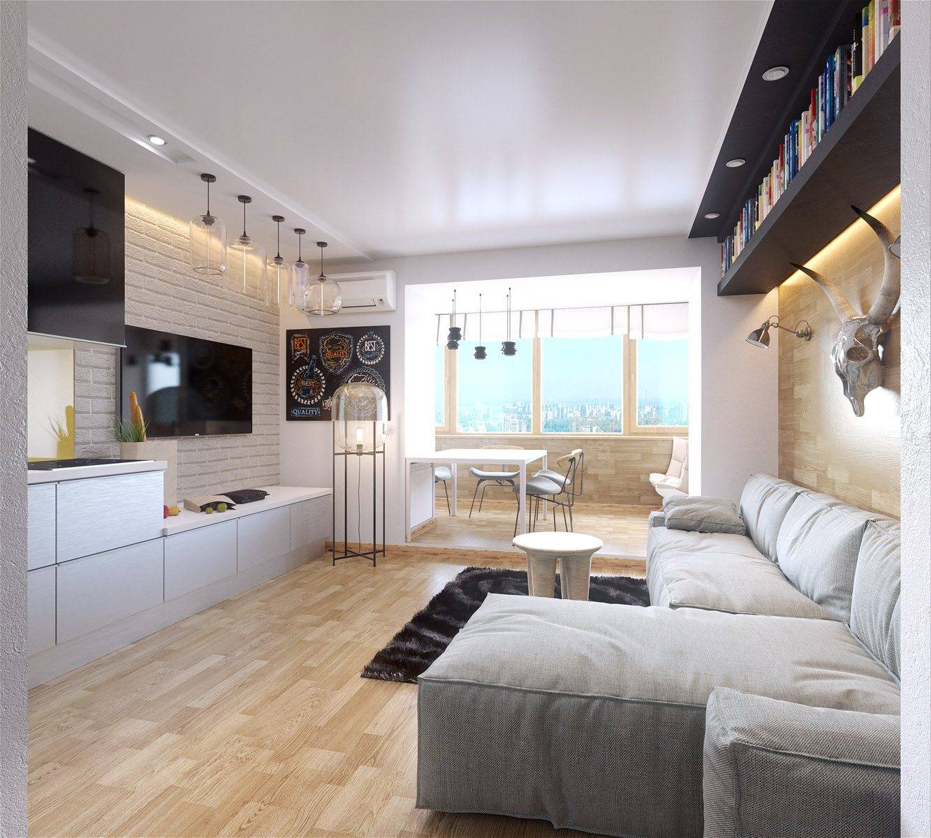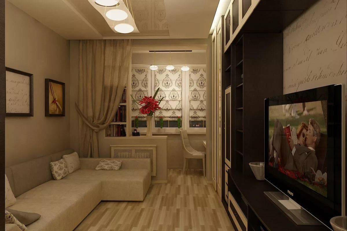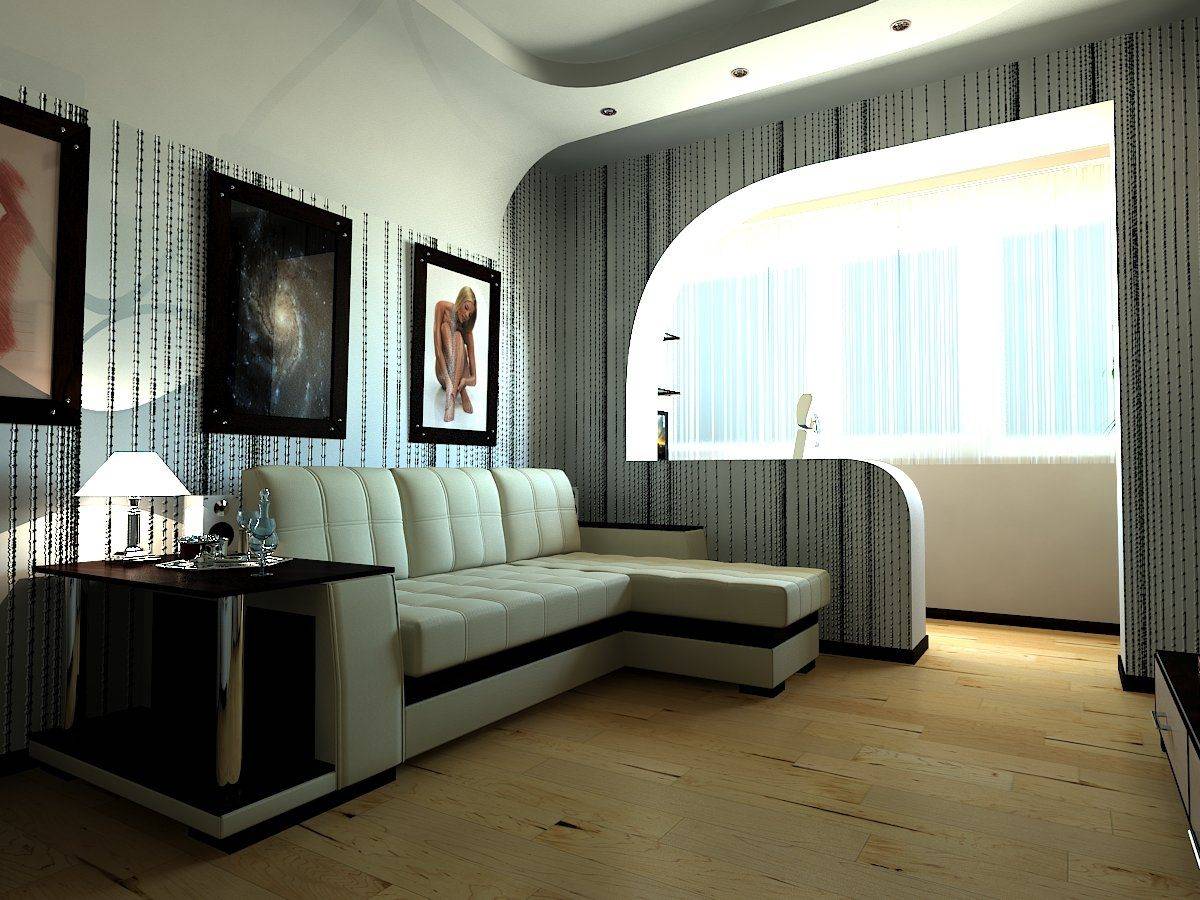 Если делать минимальное преображение без радикальной трансформации, тогда убирают только балконную дверь и окно. Тогда остается продумать, как оформить подоконное пространство. Его можно выполнить в виде барной стойки, большой столешницы или рабочего места под компьютер или компактное средство производства. Тогда разграничение пространства будет наиболее полезным.
