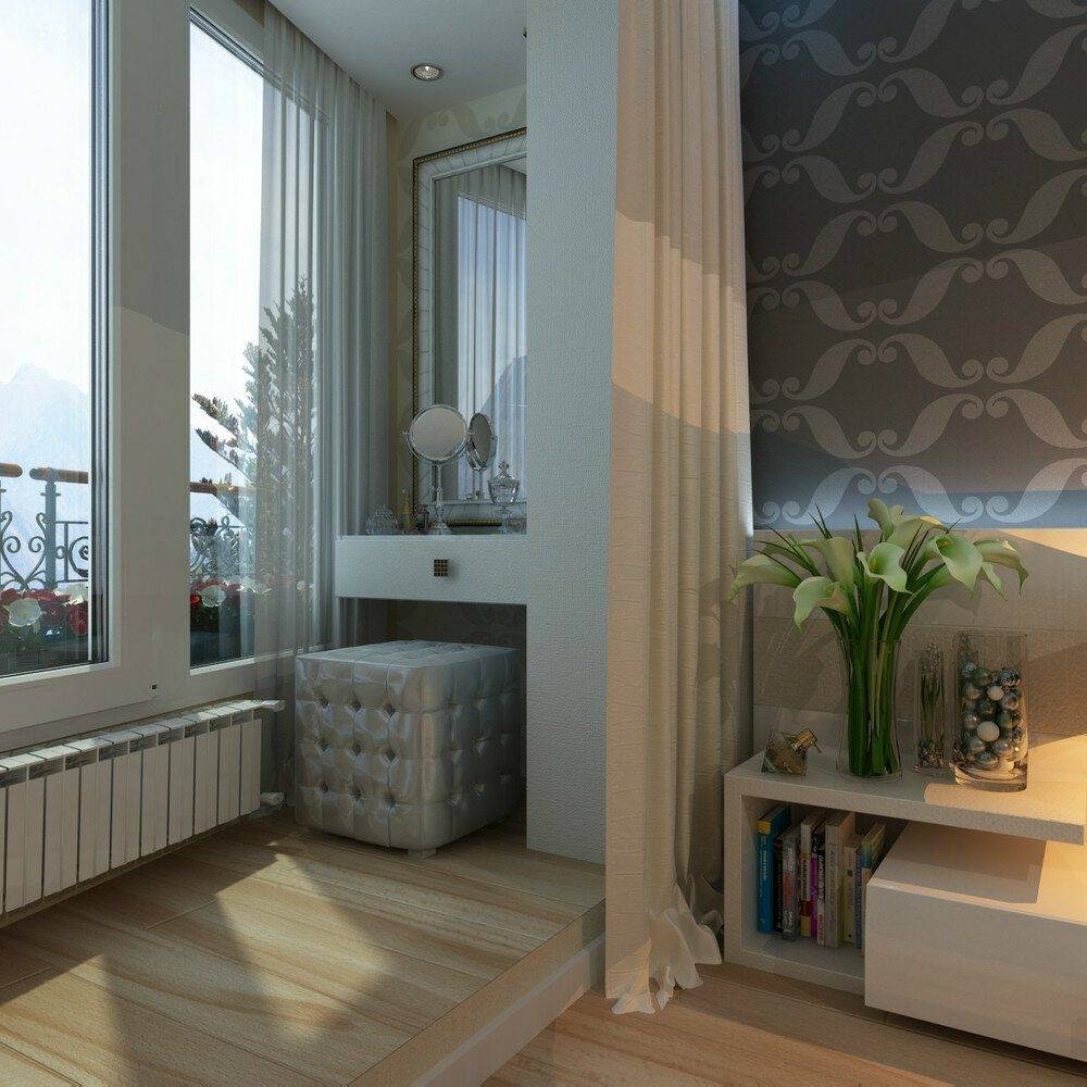 Если грамотно объединить лоджию / балкон со спальней, у хозяев появляется немало преимуществ полученного пространства: