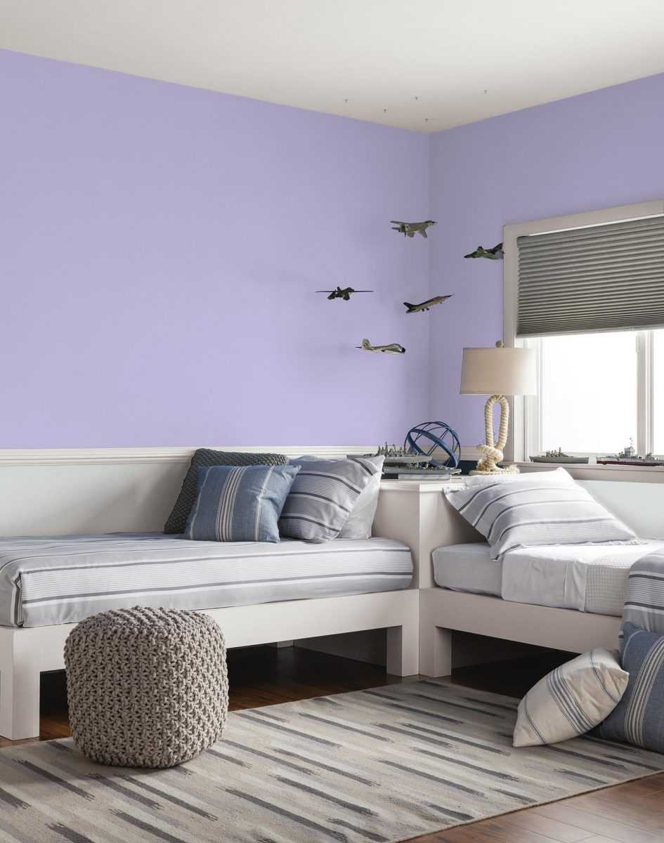 В комнате для девочки-подростка в паре с леденцово — розовым, фиолетовый цвет решит еще одну задачу: сделает интерьер менее приторным, чуть более строгим. А фиолетовый с вкраплениями серого – отличный выбор для комнаты подростка-мальчика.