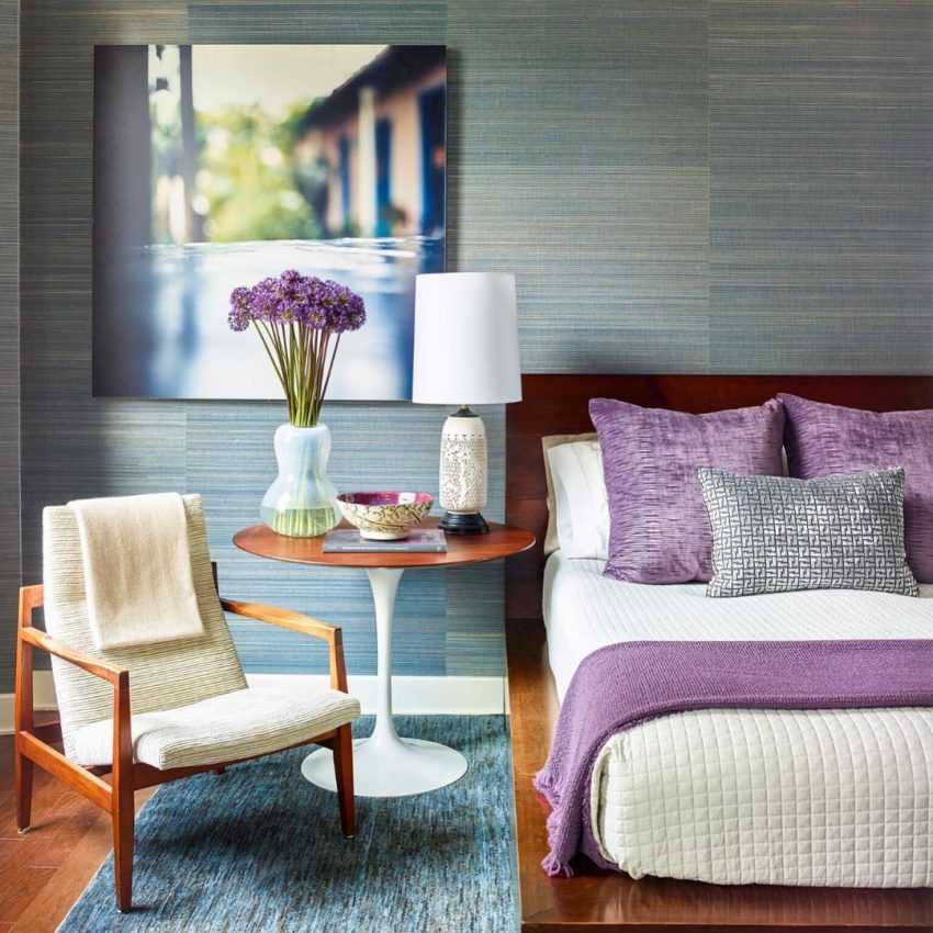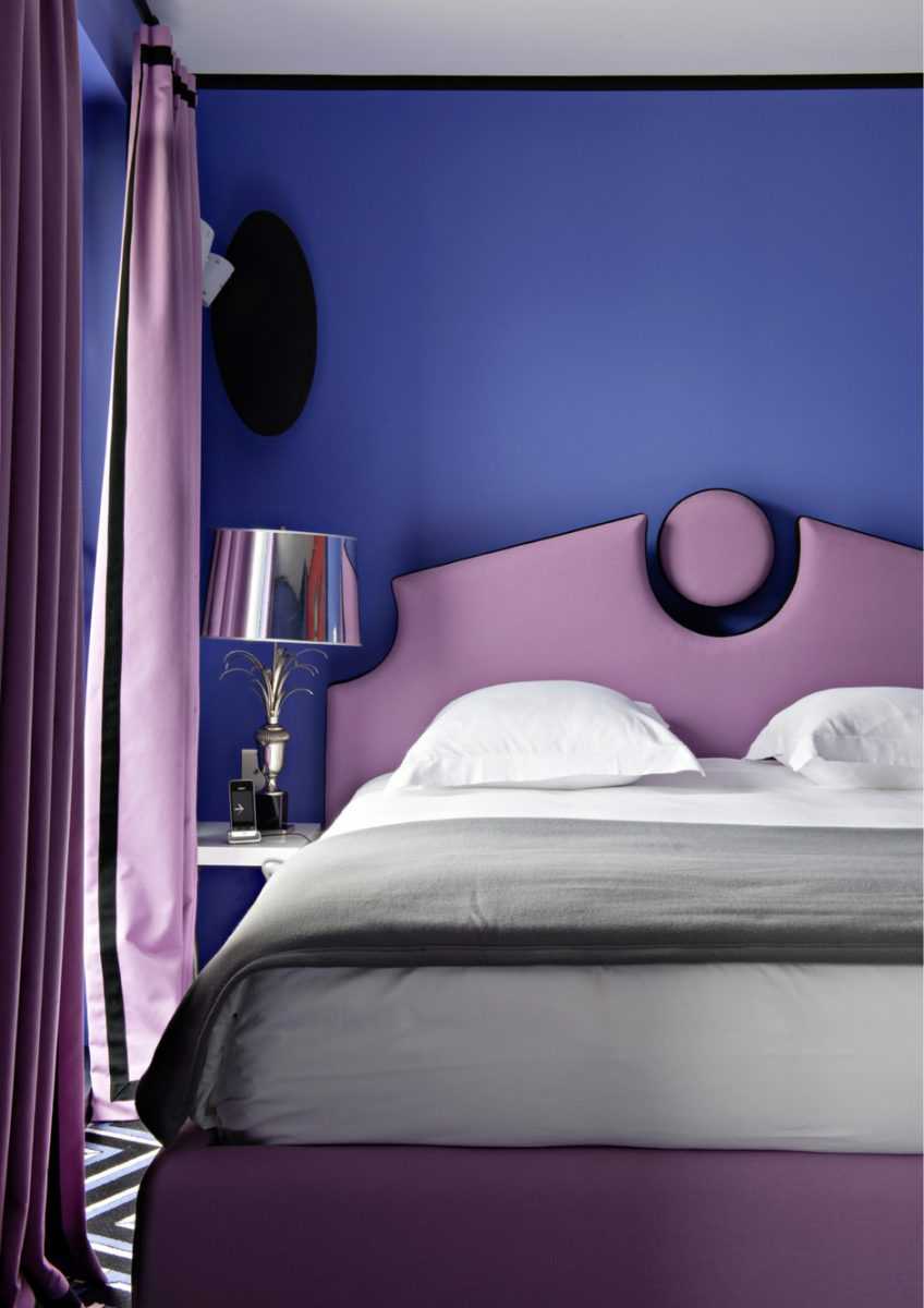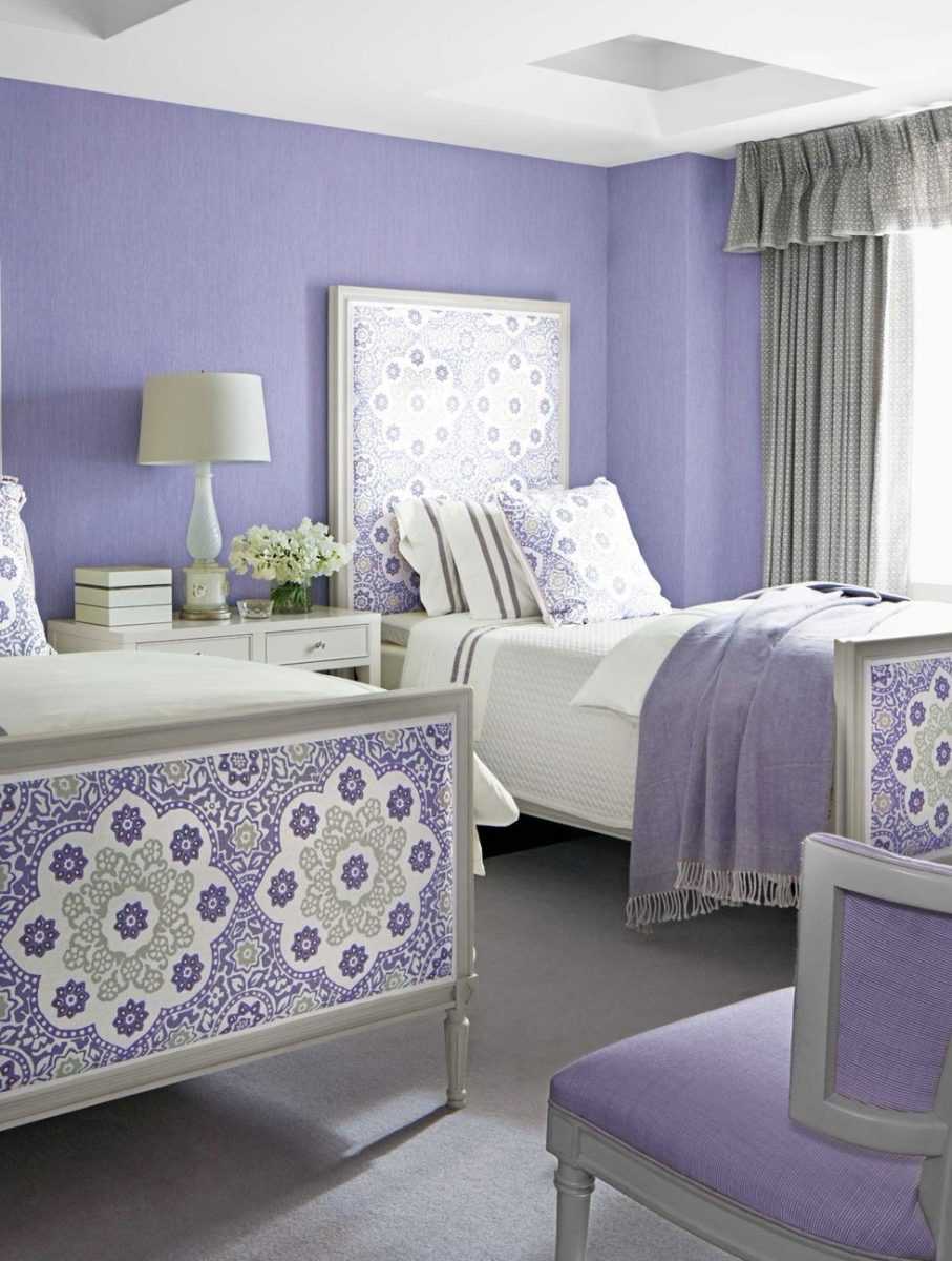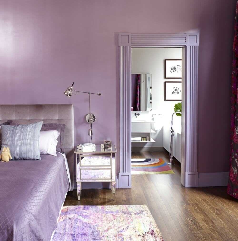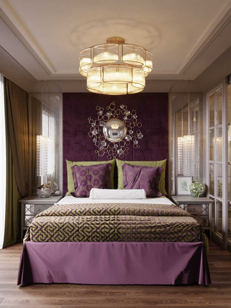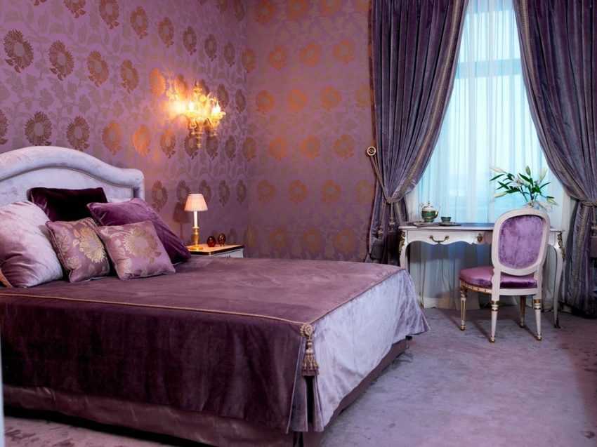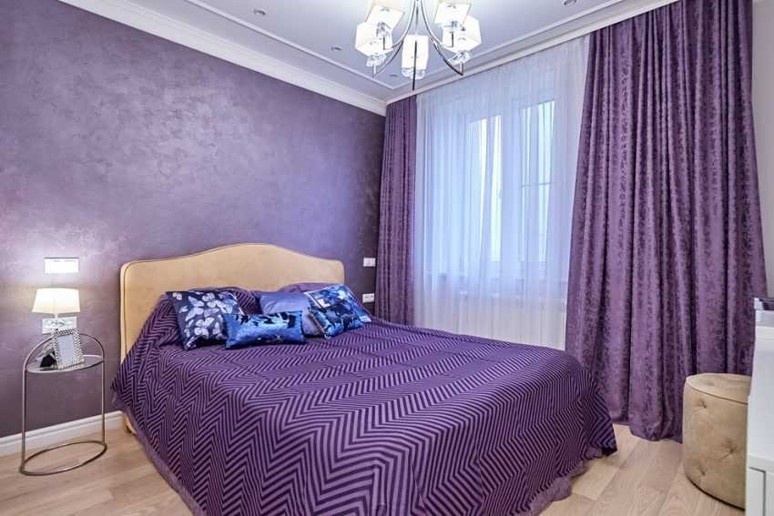 Фиолетовый цвет подойдет для спален в различных стилях: