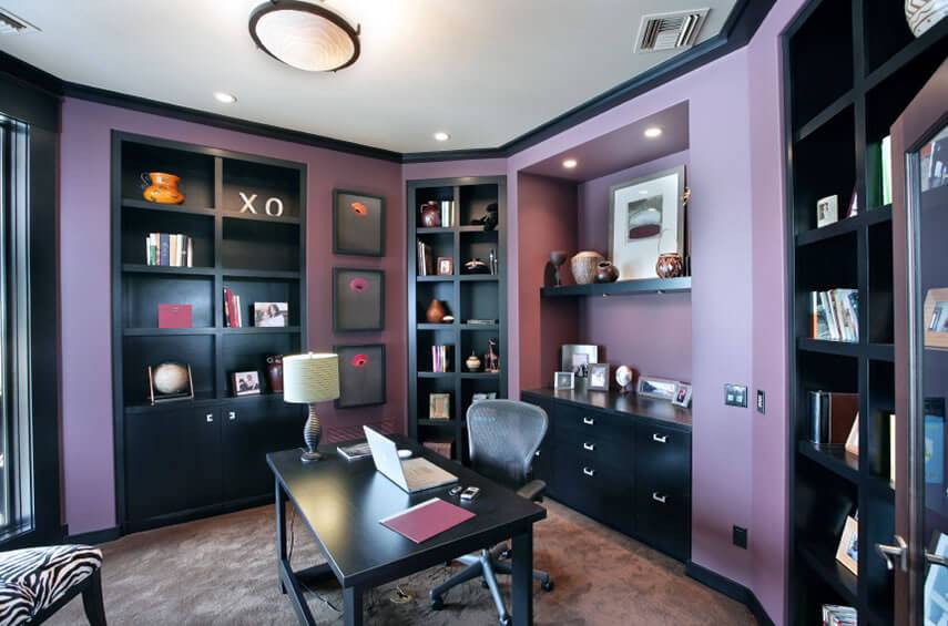 В рабочем кабинете приглушенный фиолетовый цвет – союзник и помощник.