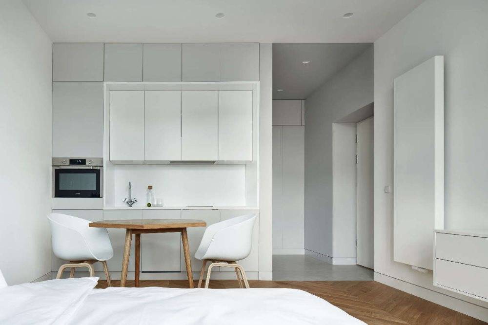 Минимум мебели, максимум пространства – характерные черты минималистического интерьера, идеально подходящие для квартиры-студии небольшого размера