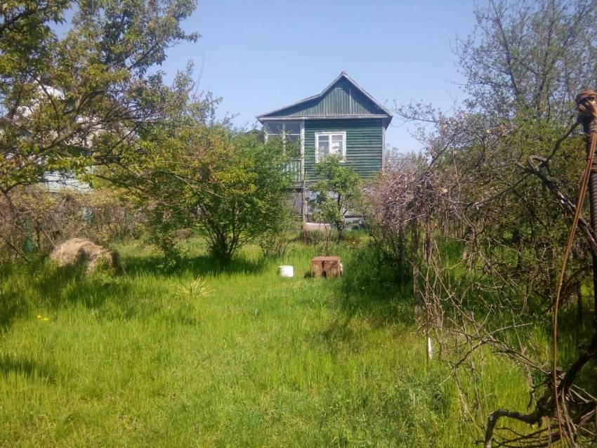 С задней стороны дома около огорода стихийно образовался захламленный уголок с цветочными горшками и прочим огородными мелочами.