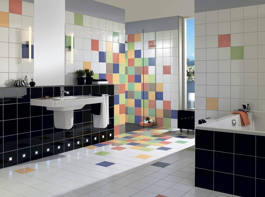 В стандартных многоэтажных домах, сложенных из бетонных панелей, оборудован раздельный санузел. Это позволяет применять керамическую плитку любых размеров и цветовой палитры. Выбор оттенков и декора выбирается в зависимости от размера ванной комнаты и личных предпочтений хозяев.