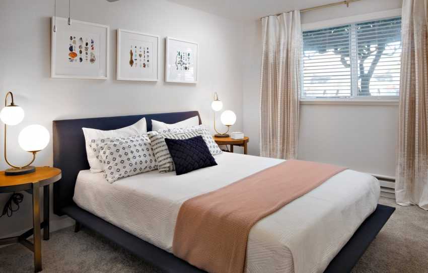 Дизайн узкой спальни и освещение: от стандартных до оригинальных решений