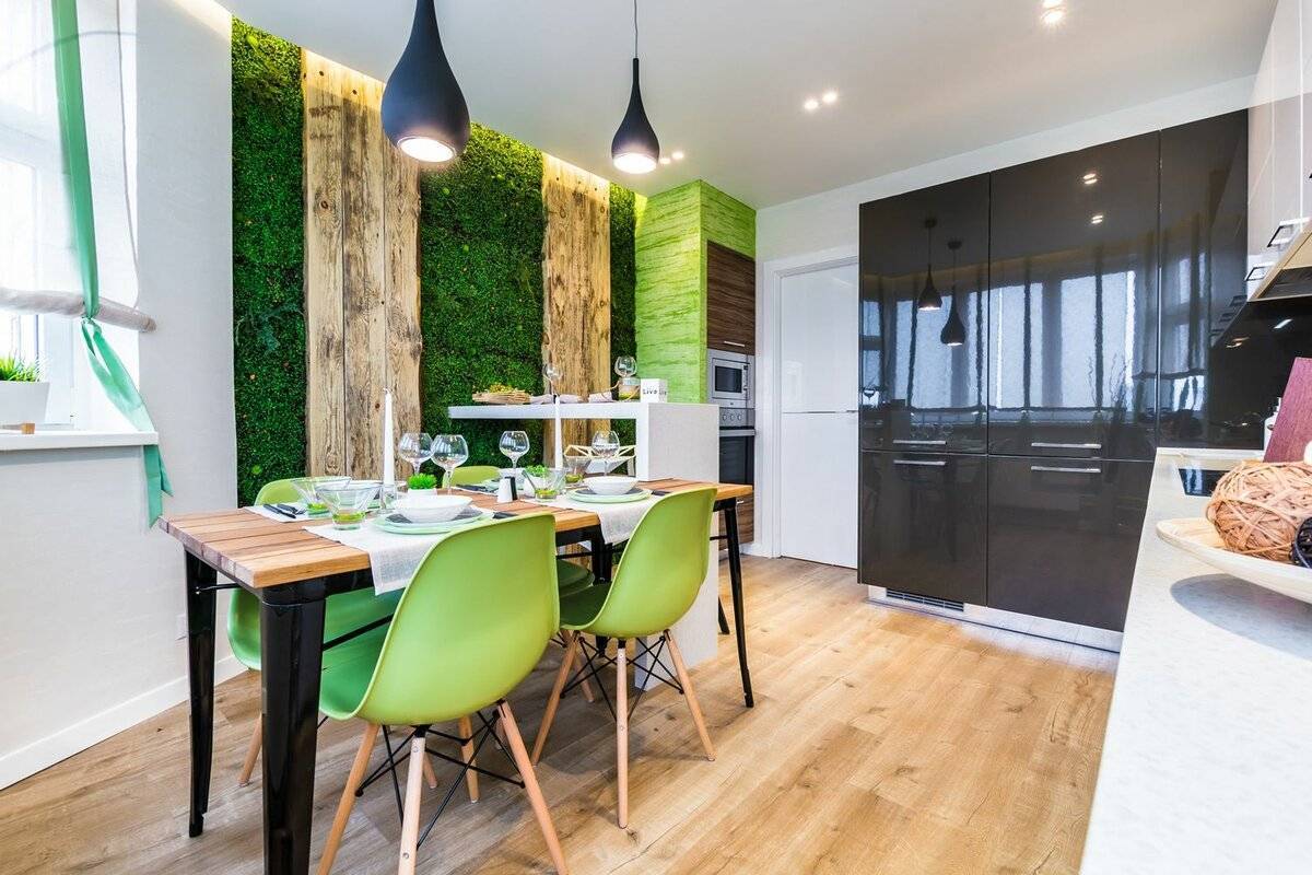 Использование разных оттенков зеленого – модный тренд этого года, который пришел из прошлого. Это позволит немного освежить интерьер, а также выделить мебель синих оттенков.