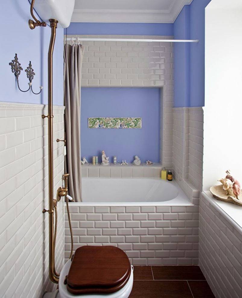Более удачный вариант – монтаж компактной ванны (сидячей), длина которой не превышает 1200 мм. Чаще всего такую сантехнику закрывают перегородками, обеспечивая комфортное пребывание в комнате. Сидячую модель устанавливают даже в совмещенный санузел, чтобы объединить все необходимые функции в одном пространстве.