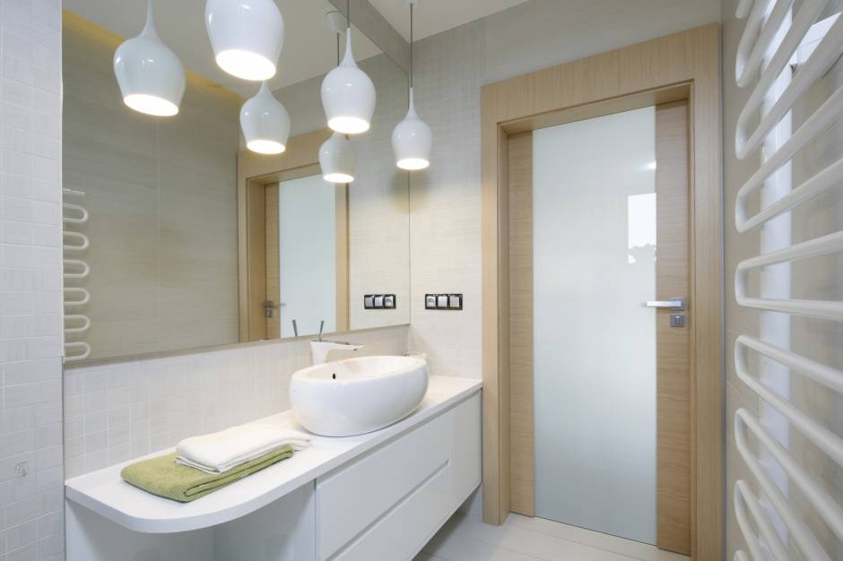 Мелкие детали, средства гигиены и предметы интерьера лучше скрыть за дверцами шкафов
