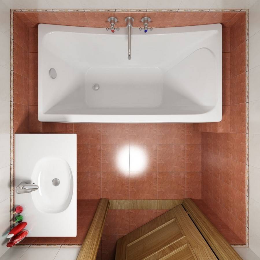 В комнате с квадратной планировкой ванну можно определить в любое место. В прямоугольных помещениях для нее лучше выделить одну из коротких стен, а под длинную выставить остальную сантехнику. Иногда делают встроенную ванну или декорируют ее плиткой, она сливается с отделкой и не кажется габаритной. Для некоторых интерьеров применяют угловую или каплеобразную ванну. Такое решение помогает освободить дополнительный угол. В комплекте с такой ванной красиво и своеобразно смотрятся угловой унитаз и раковина.