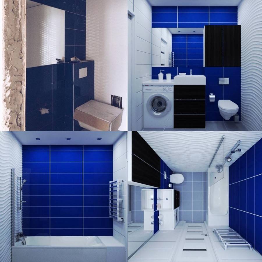 Решения и интерьер ванной 5 кв. м., представленные на различных сайтах в интернете, показывают, как можно совмещать несколько вариантов отделки, одновременно экономя денежные средства.