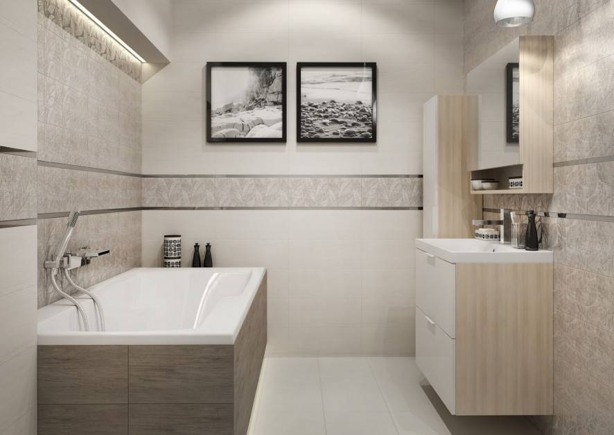 Преимущество применения — можно использовать во всех влажных помещениях, долговечность, отсутствие в составе вредных веществ. Идеально подойдет для дизайна ванной комнаты 5 кв. м. На современном строительном рынке представлено большое количество образцов керамической плитки в разных направлениях.