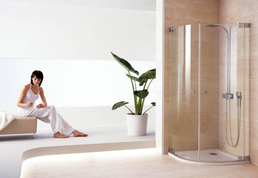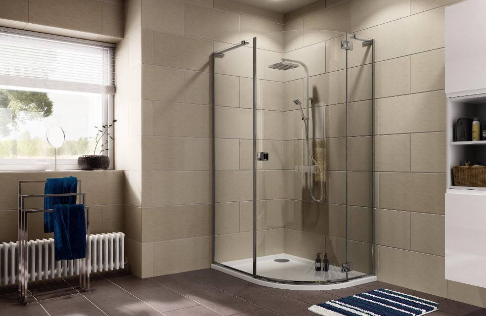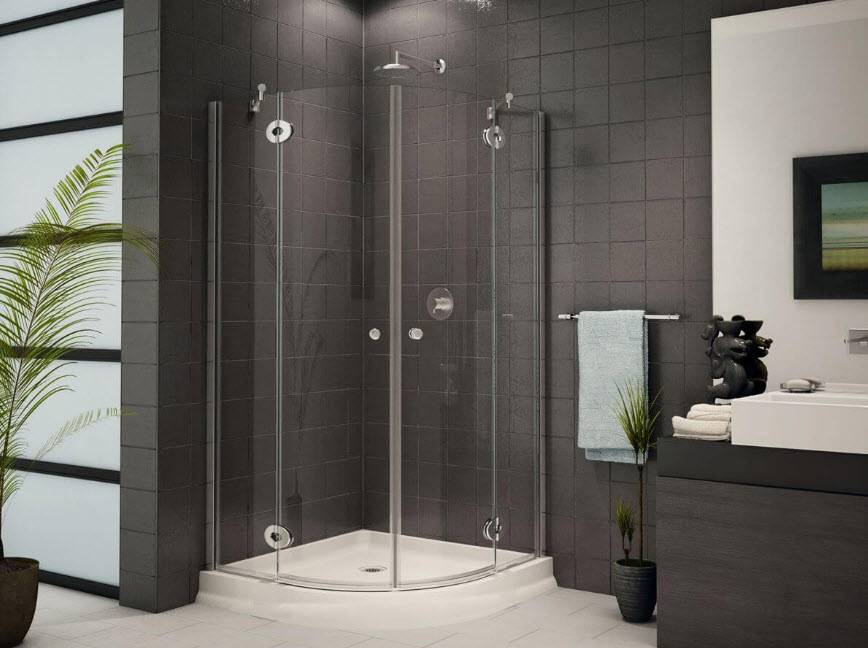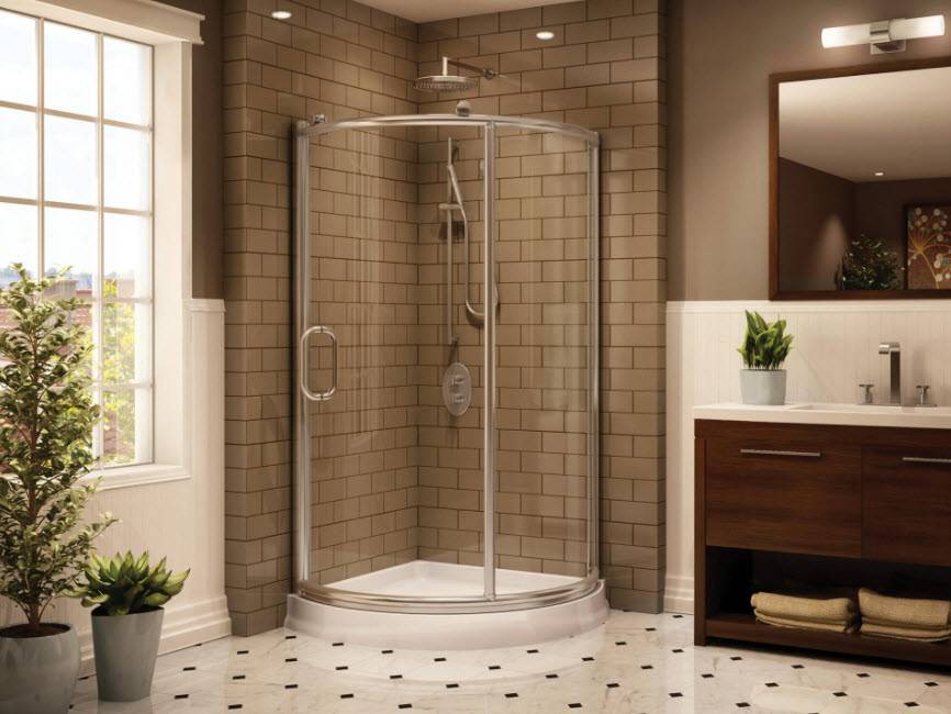 В ванной с ограниченной площадью кабинку всегда располагают в одном из углов. По этой причине наиболее подходящей будет модель, оснащенная самым негабаритным поддоном «четверть круга».
