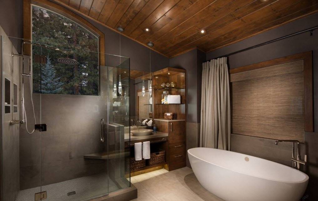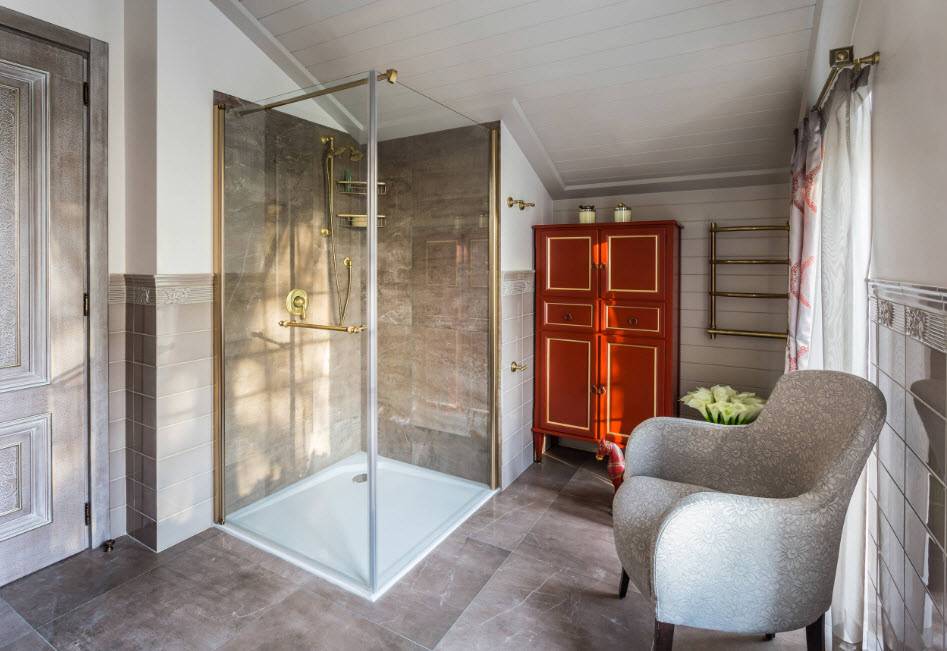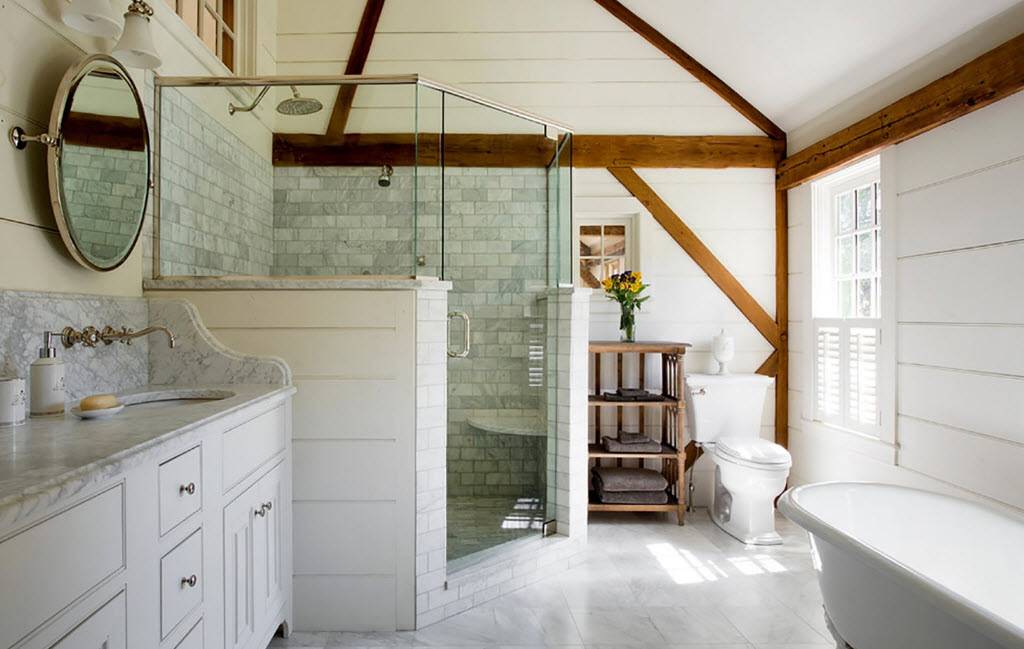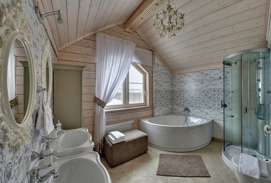 При оформлении ванной комнаты с душевой в загородном доме специалисты рекомендуют обратить особое внимание на следующие направления:. Кантри – деревенский стиль, создающий уютную атмосферу внутри ванной комнаты