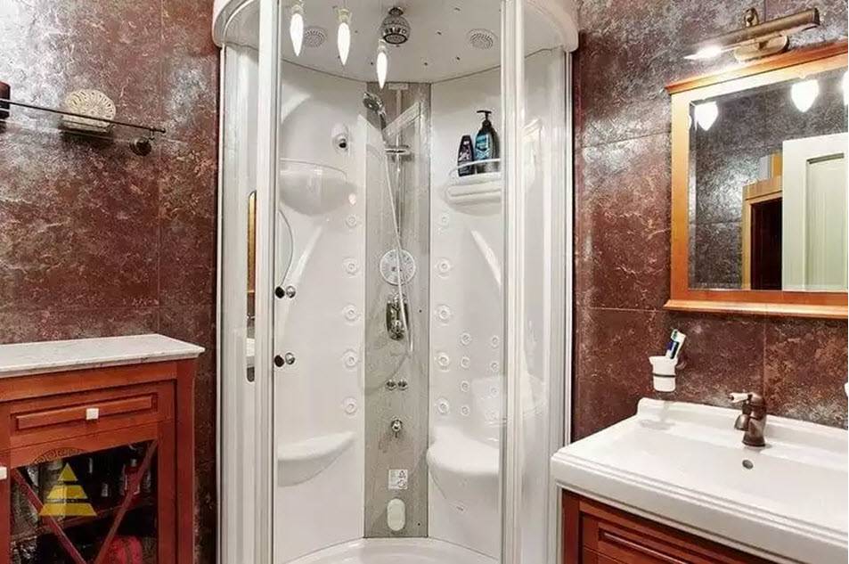 Совет. Модели кабин прямоугольной формы больше подходят для просторных помещений.