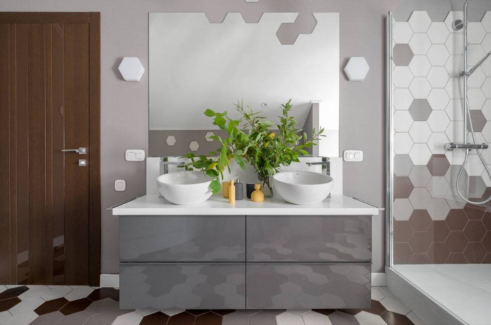 Часть дизайна ванной комнаты – выбор красивых материалов и цветов. Знаете, сколько существует разных идей облицовки? Попробуйте использовать скульптурные трехмерные плитки, чтобы добавить современности пространству. Переходный декор, сочетающий современный и традиционный стили, занимает второе место по популярности.