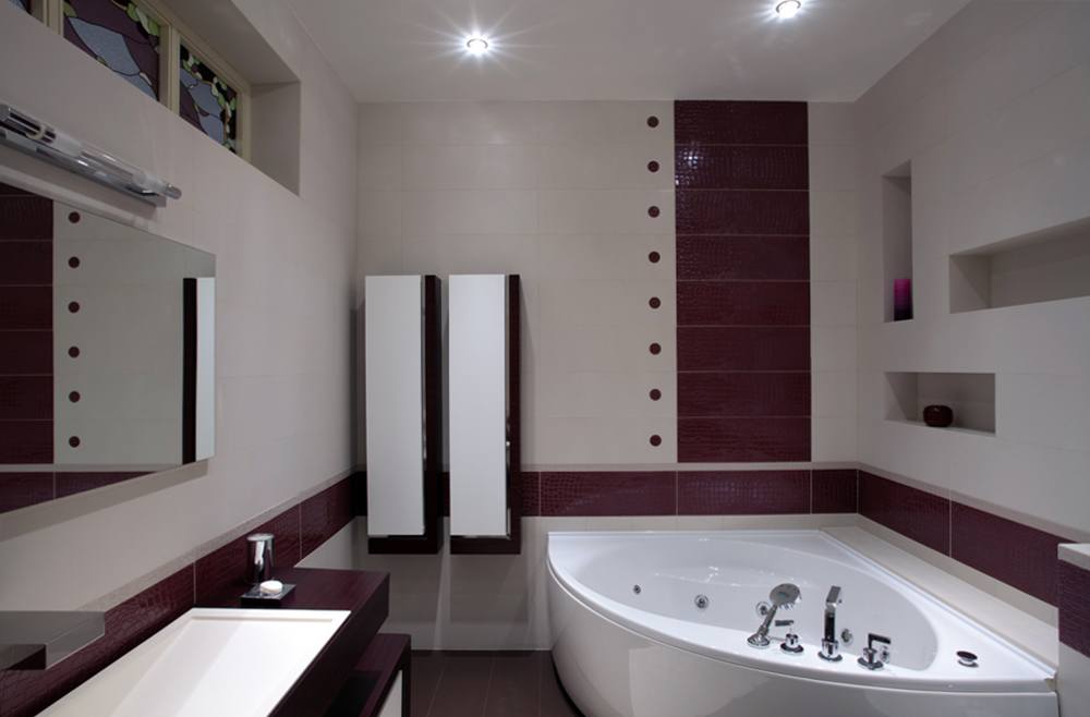 Угловая ванна в интерьере санузла