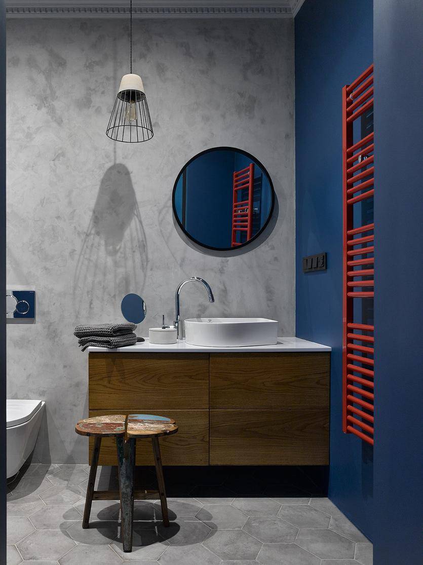 Ключевым элементом комнаты способна стать ванная необычного оттенка или формы. Сыграв на контрасте, можно придать помещению оригинальности и эффектности.
