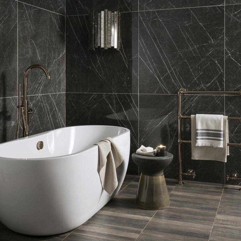 Если помещение не слишком большое, то ванную можно установить вдоль стены, чтобы сэкономить свободное пространство. Если площадь комнаты большая, то ее все же лучше поставить в центральной части.