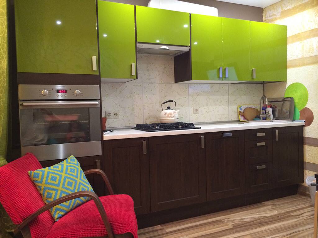 Неожиданно привлекательно выглядит комбинация фуксии с зеленым. Мягкий салатовый тон сделает помещение веселее, позитивнее. Не стоит смешивать цвета в равной пропорции.