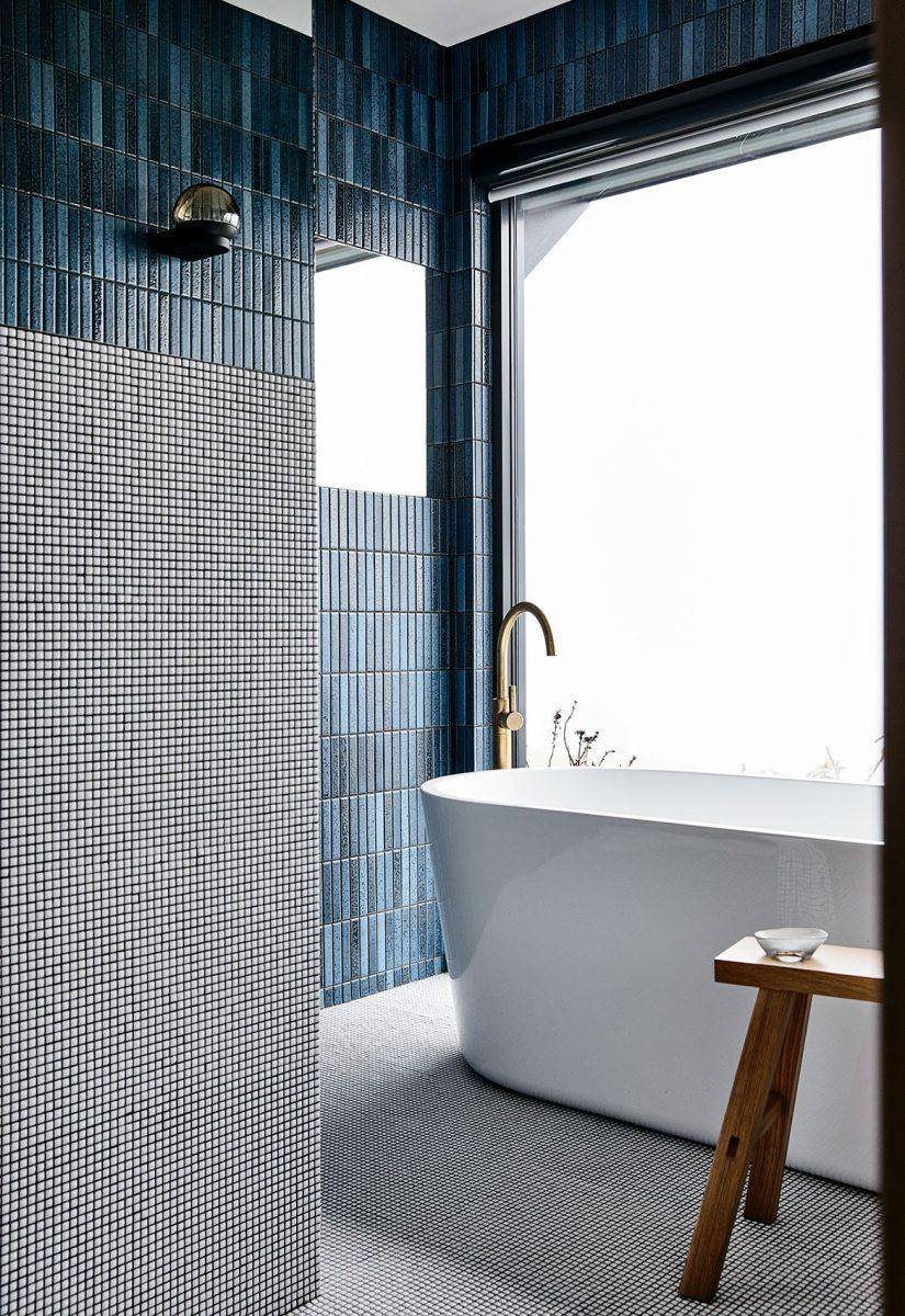 Для обустройства отделки на основе двух цветов или нескольких оттенков одного цвета традиционно используют горизонтальные полосы шириной не более двух плиток. В этом случае затемненный интерьер с отделкой из двух близких цветов получается достаточно консервативным и одновременно комфортным для повседневного пользования.