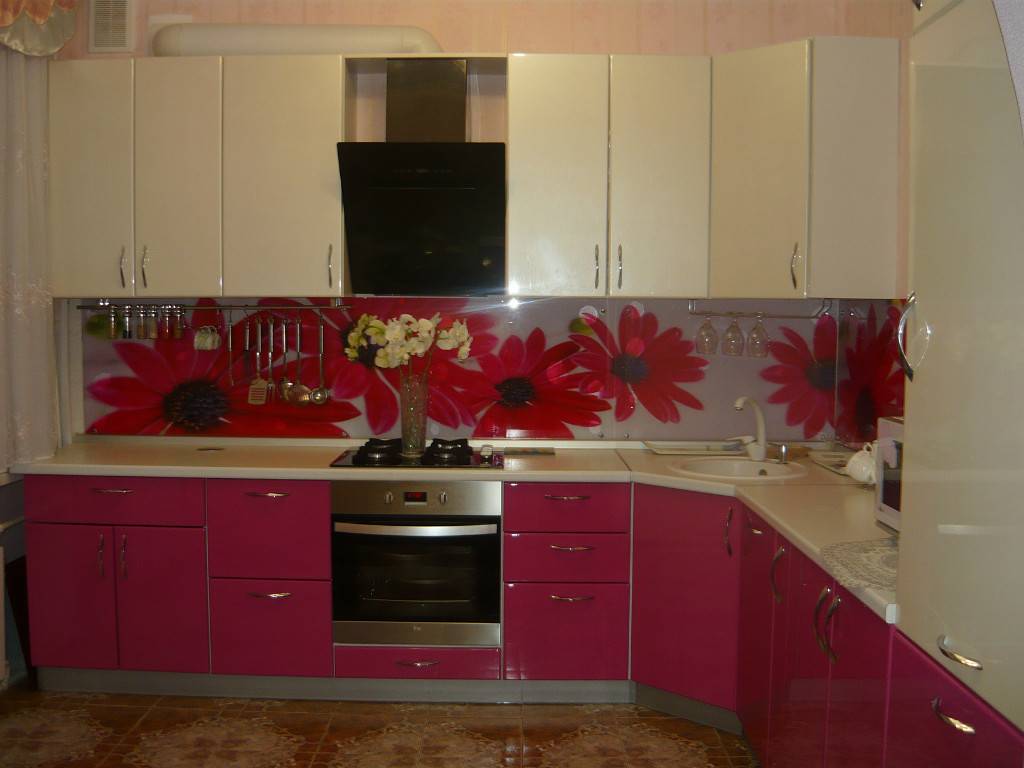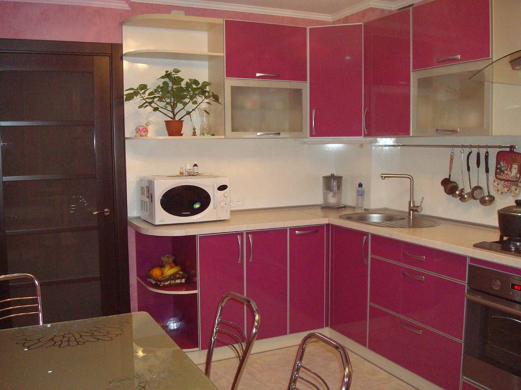 Традиционное сочетание на кухне: цвет фуксии с белым. Благодаря чистоте белого, пурпурный раскрывается, становится глубже и интереснее. С ним сочетаются все оттенки фуксии, от самых мягких до броских и насыщенных.