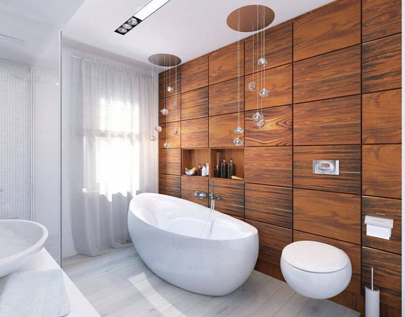 - Фитотерапевты утверждают, что дерево благоприятно воздействует на психику человека, тем более, что ванная комната претендует на место для релаксации.