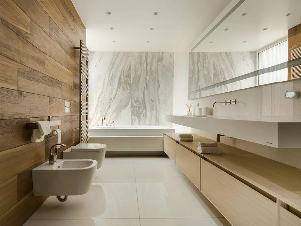 Если ванная комната сделана под дерево, то это требует особого подхода и подготовки. Очень часто такой вариант отделки используется для деревянных домов. Он подойдет для создания интерьеров во многих стилях.