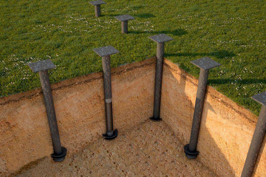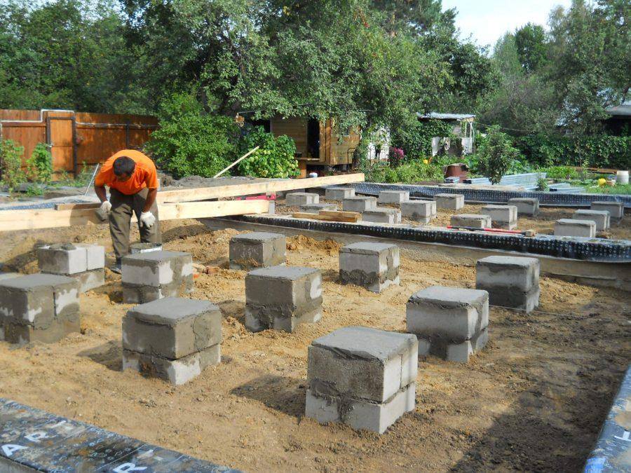 Установка столбиков фундамента