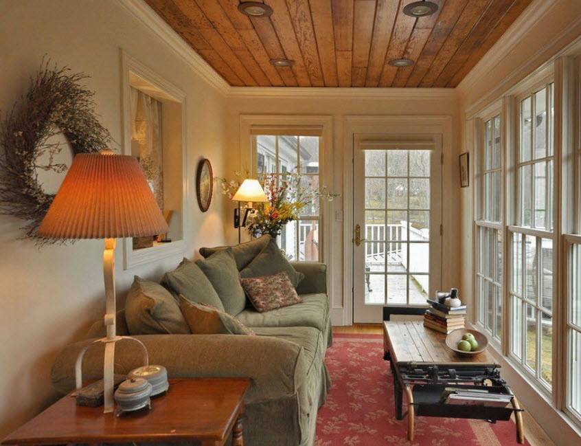 Диваны в веранды ставят при больших площадях. И даже тогда другие предметы присутствуют по минимуму