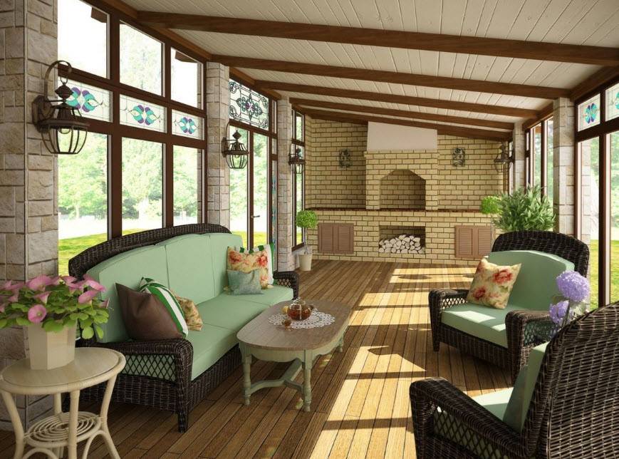 Дизайн закрытой веранды в частном доме