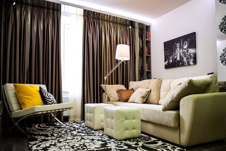Это довольно удачный вариант, не требующий больших затрат, однако здесь важно постоянно поддерживать опрятный внешний вид помещения, чтобы гостиная не напоминала спальню и наоборот
