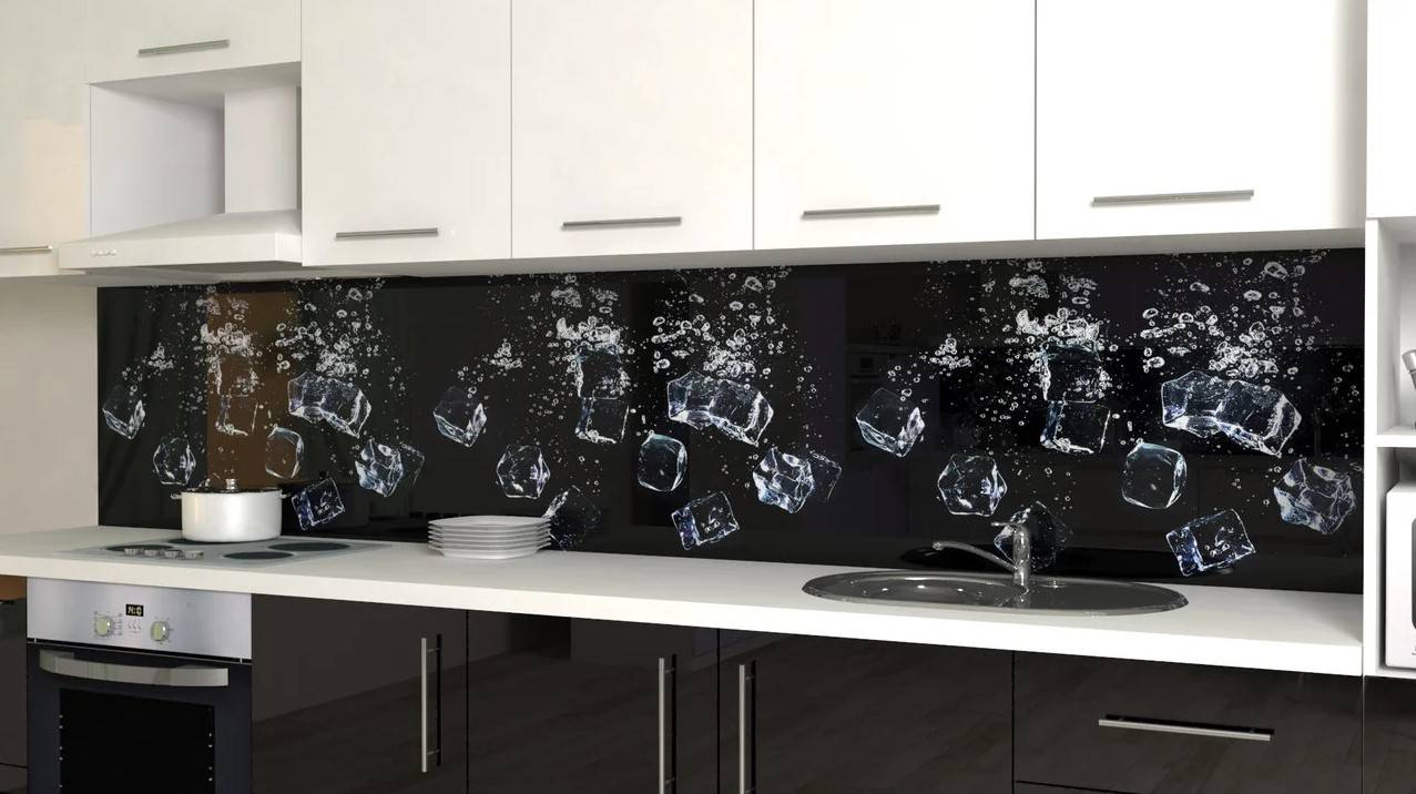 Такие изделия можно крепить над раковиной и печкой. Стекло не впитывает запахи, хорошо чистится, гигиенично и не меняет цвет со временем. При этом каждый фартук делает интерьер уникальным.