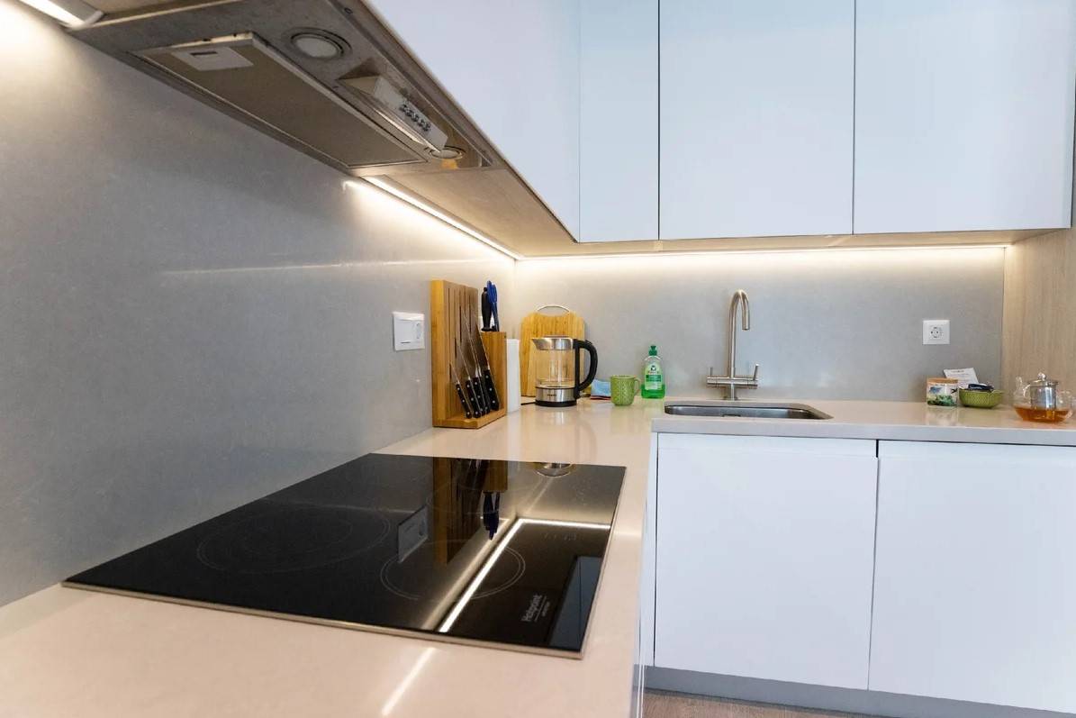 Казалось бы, удобно сперва обшить стену материалом, а затем спокойно навесить шкафчики поверх. Однако подобное «казалось бы» на практике оборачивается тем, что мебель может упереться в плитку. Если гарнитур делался под заказ, это чревато новой подгонкой. Поэтому идеальный алгоритм следующий: устанавливаем гарнитур — выкладываем фартук. И все будет замечательно!